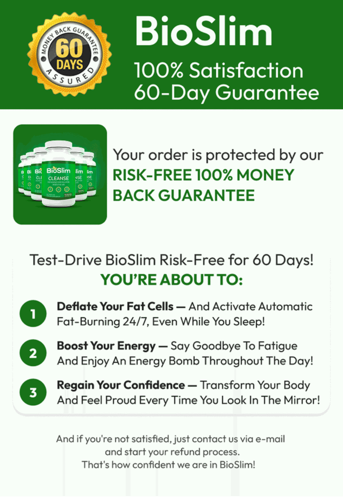 Try it risk-free with our 100% money-back guarantee—so you can see how BioSlim fits into your routine with nothing to lose.
